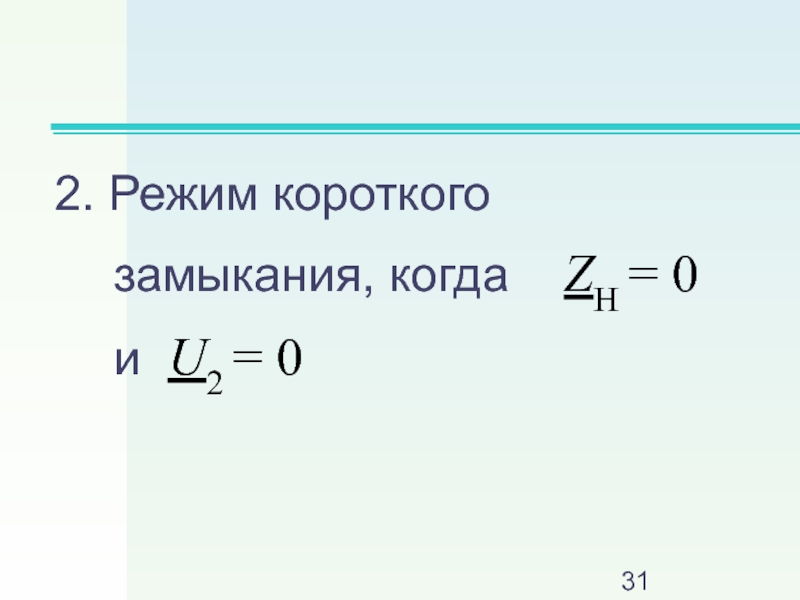 Слайд 312. Режим короткого замыкания, когда ZН = 0 и