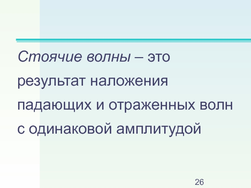 Слайд 26Стоячие волны – это результат наложения падающих и отраженных волн с