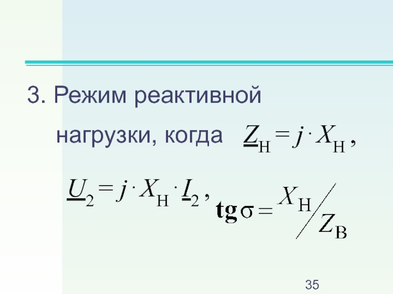 Слайд 353. Режим реактивной нагрузки, когда ZН = j⋅XH ,
