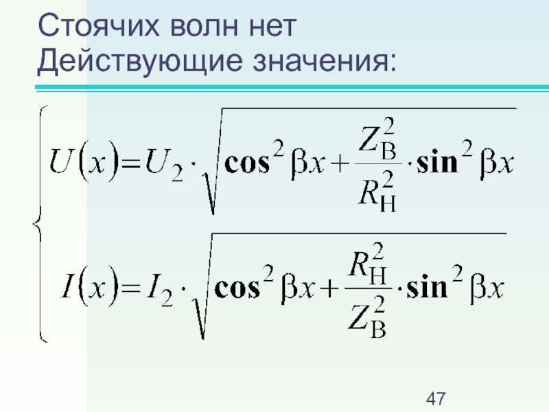 Слайд 27При стоячих волнах активная мощность в любой точке линии равна нулю