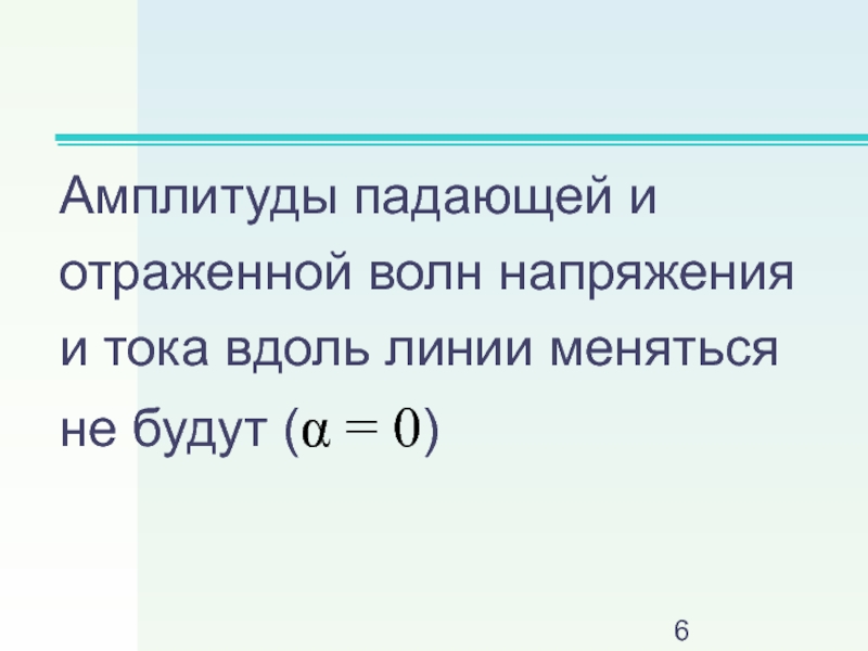 Слайд 6Амплитуды падающей и отраженной волн напряжения и тока вдоль линии меняться