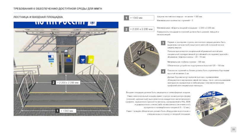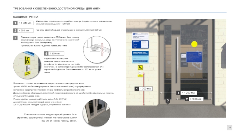 Порожек на пути транзита клиентов в ОПС может быть только у входной двери (остальные двери на пути транзита посетителей-ММГН должны быть без порожка).