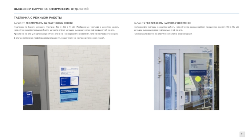 В случае изменения графика работы отделения, новая табличка наклеивается поверх старой.