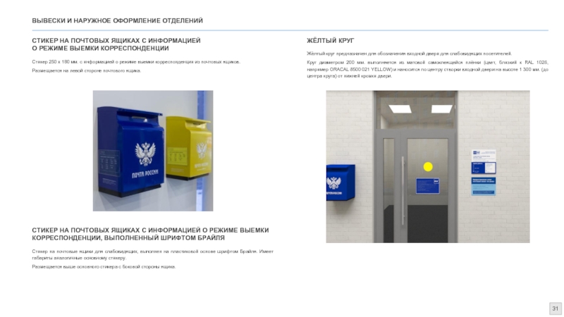 СТИКЕР НА ПОЧТОВЫХ ЯЩИКАХ С ИНФОРМАЦИЕЙ О РЕЖИМЕ ВЫЕМКИ КОРРЕСПОНДЕНЦИИ, ВЫПОЛНЕННЫЙ ШРИФТОМ БРАЙЛЯ