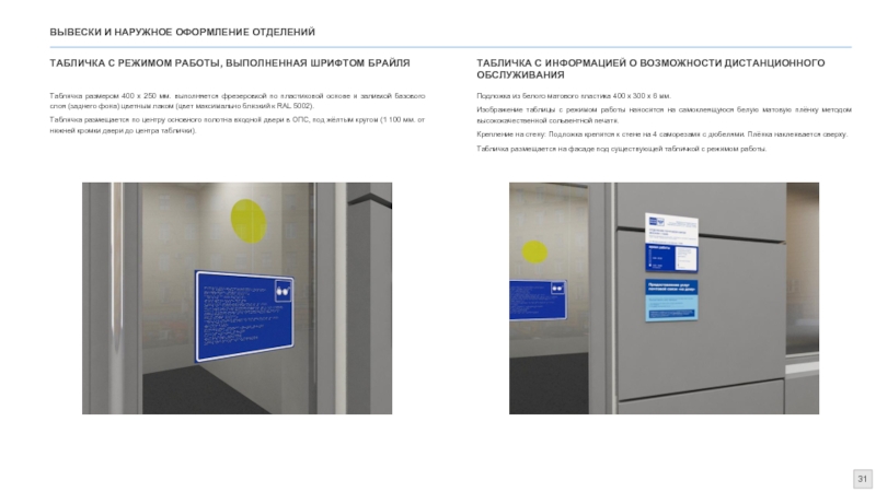 Табличка размещается на фасаде под существующей табличкой с режимом работы.