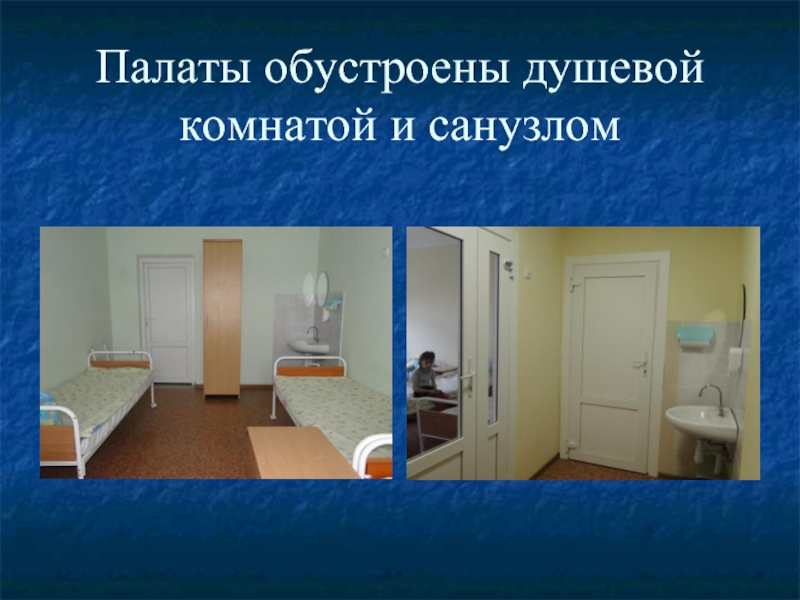 Слайд 11Палаты обустроены душевой комнатой и санузлом