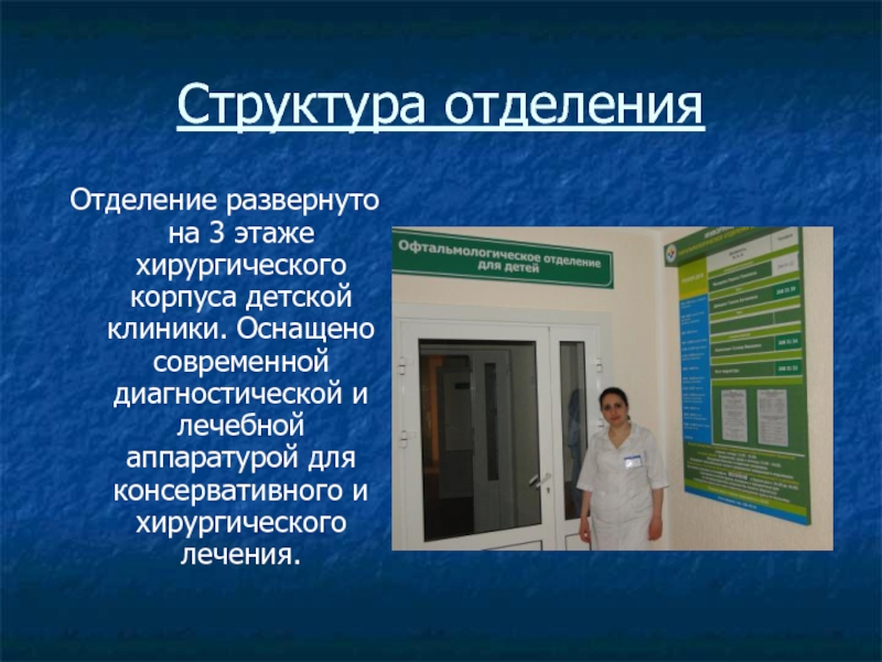 Слайд 12В центре отделения расположен пост медицинских сестер, где вас всегда доброжелательно