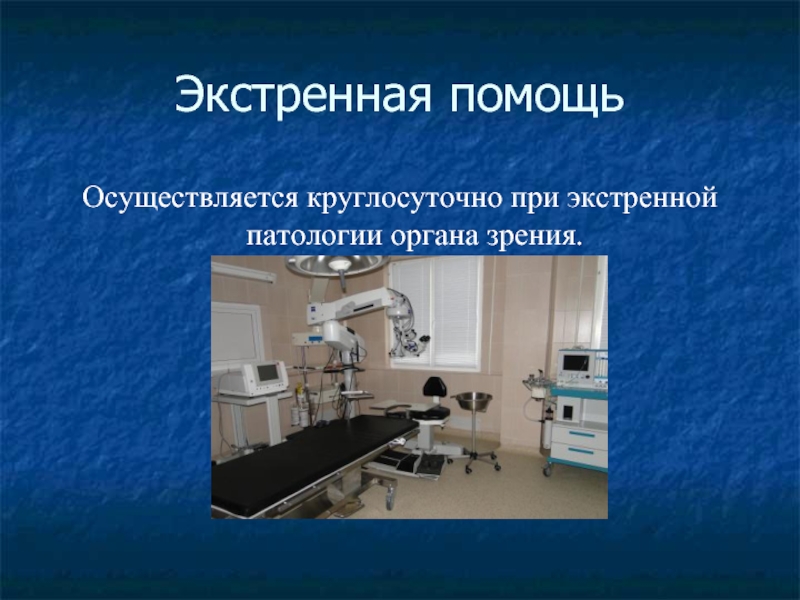 Осуществляется круглосуточно при экстренной патологии органа зрения.