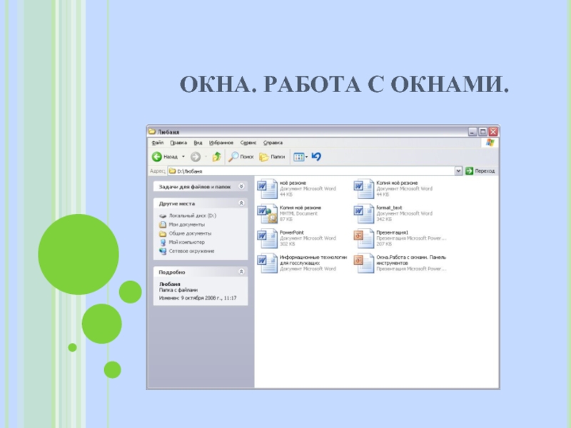 Слайд 1ОКНА. РАБОТА С ОКНАМИ. ПАНЕЛЬ ИНСТРУМЕНТОВ.