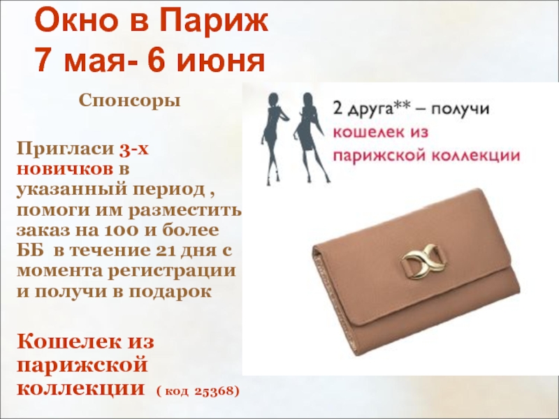, помоги им разместить заказ на 100 и более ББ в течение 21 дня с момента регистрации и получи в подарок