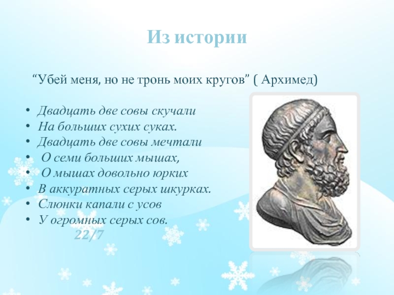 Творческое задание: по возможности придумать стихотворную фразу для запоминания числа π.