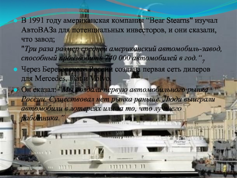 Слайд 7В 1991 году американская компания “Bear Stearns" изучал АвтоВАЗa для потенциальных