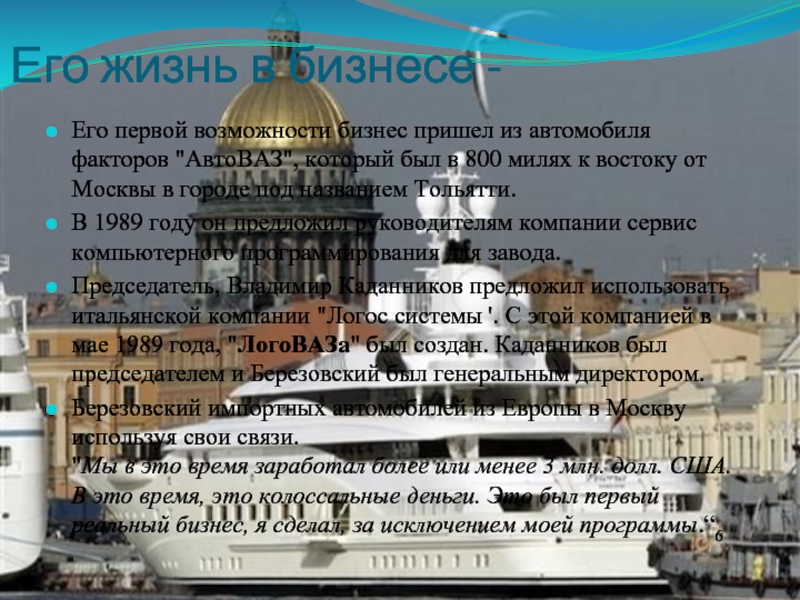 Слайд 6Его жизнь в бизнесе -