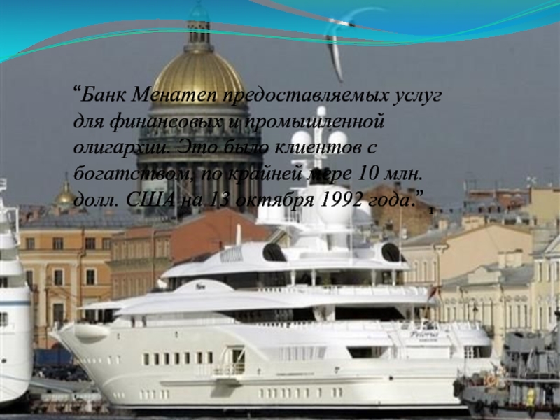 Слайд 2“Банк Менатеп предоставляемых услуг для финансовых и промышленной олигархии. Это было