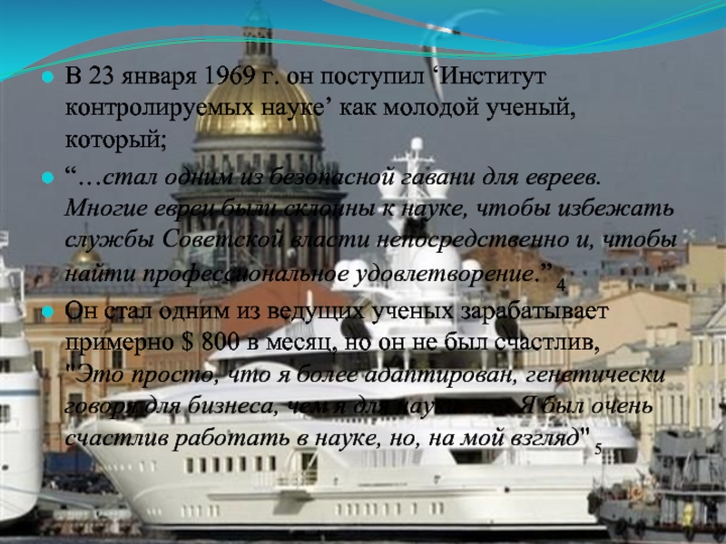 Слайд 5В 23 января 1969 г. он поступил ‘Институт контролируемых науке’ как