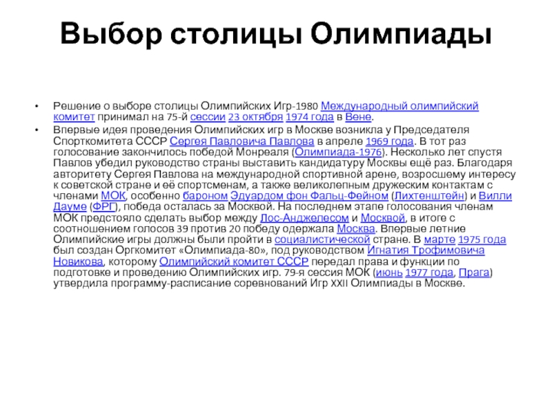 Решение о выборе столицы Олимпийских Игр-1980 Международный олимпийский комитет