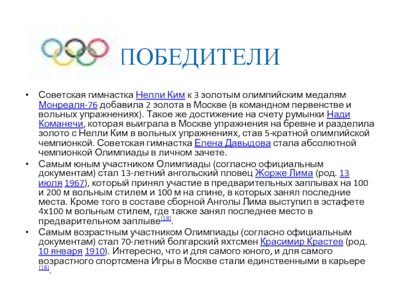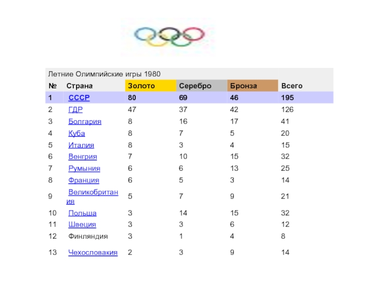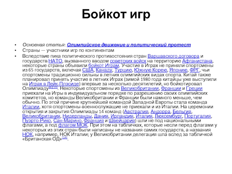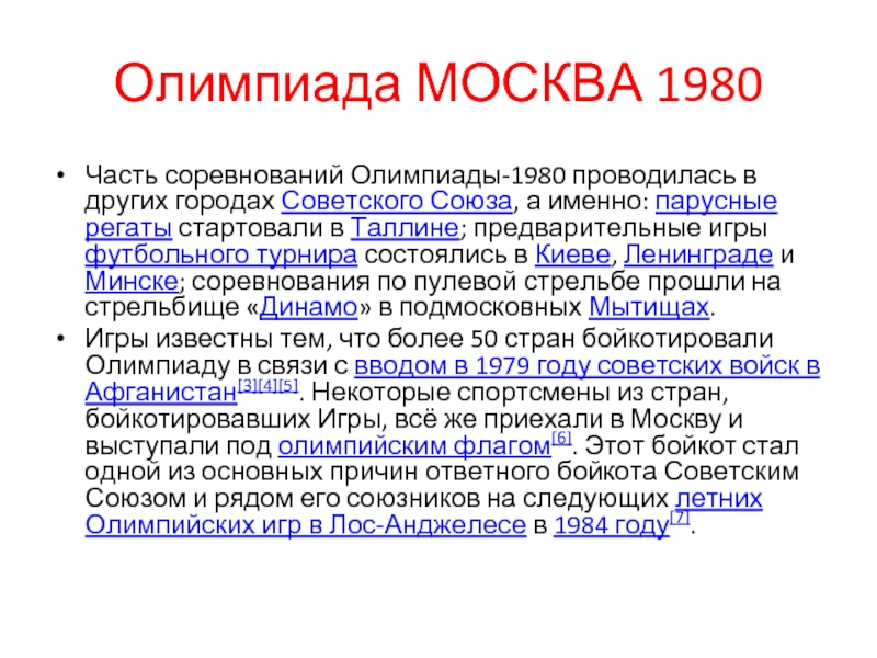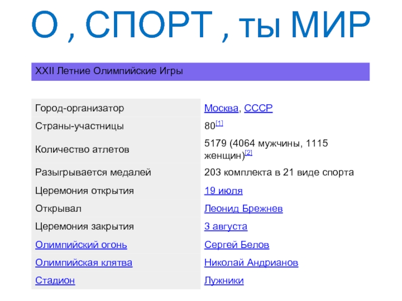 Слайд 2Ле́тние Олимпи́йские и́гры 1980 го́да (официальное название — И́гры XXII Олимпиа́ды) проходили
