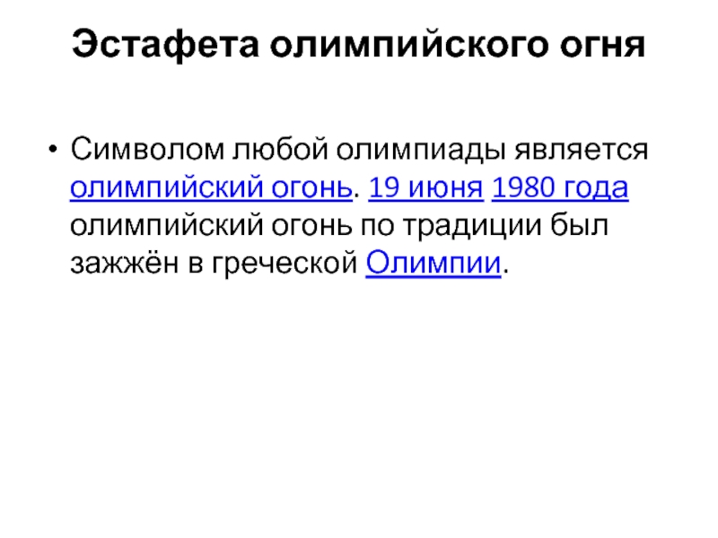 Символом любой олимпиады является олимпийский огонь. 19 июня 1980