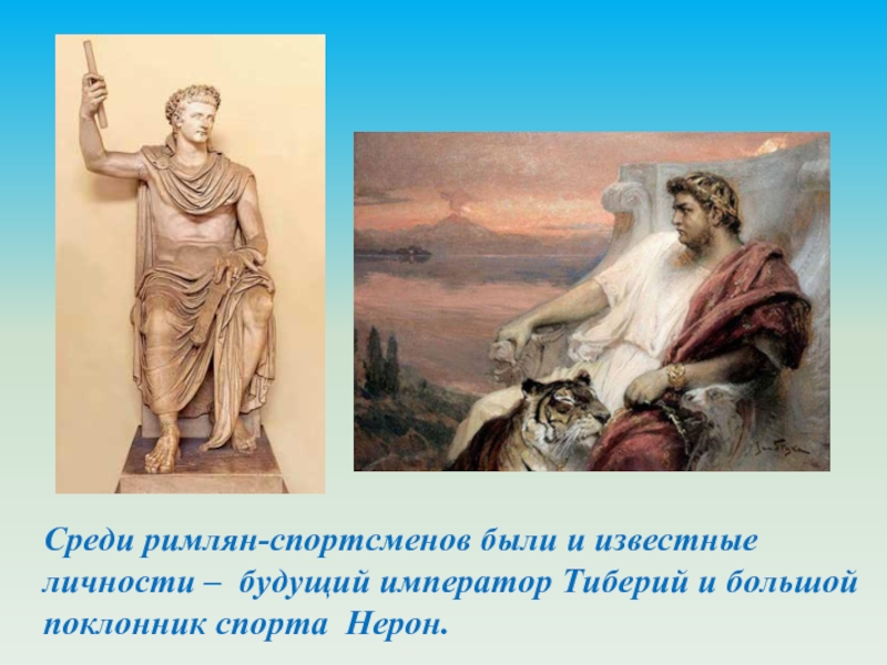 Слайд 14Среди римлян-спортсменов были и известные личности – будущий император Тиберий и