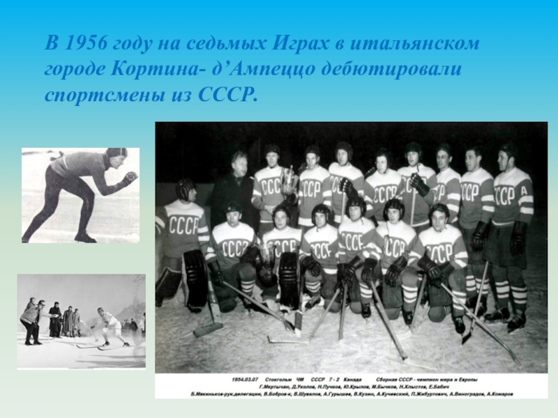 Слайд 32В 1956 году на седьмых Играх в итальянском городе Кортина- д’Ампеццо