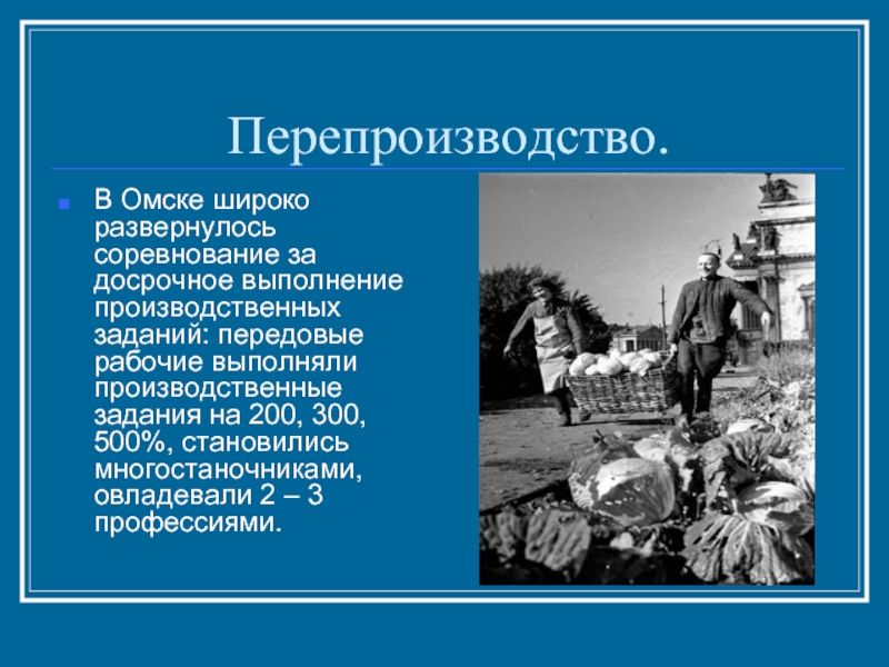 рабочие выполняли производственные задания на 200, 300, 500%, становились многостаночниками, овладевали 2 – 3 профессиями.