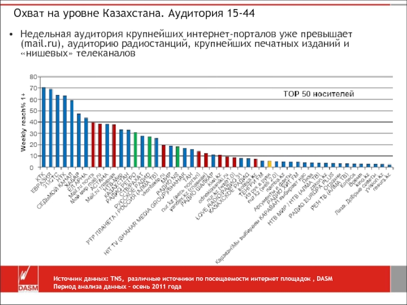 Источник данных: TNS, различные источники по посещаемости интернет площадок , DASM