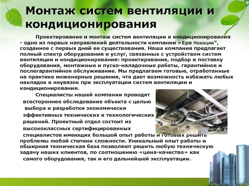 Проектирование и монтаж систем вентиляции и кондиционирования