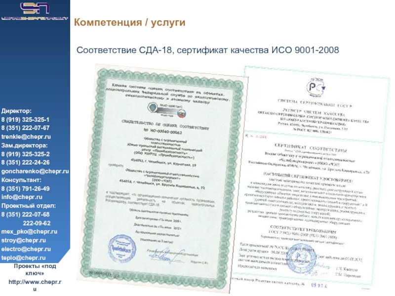 Соответствие СДА-18, сертификат качества ИСО 9001-2008