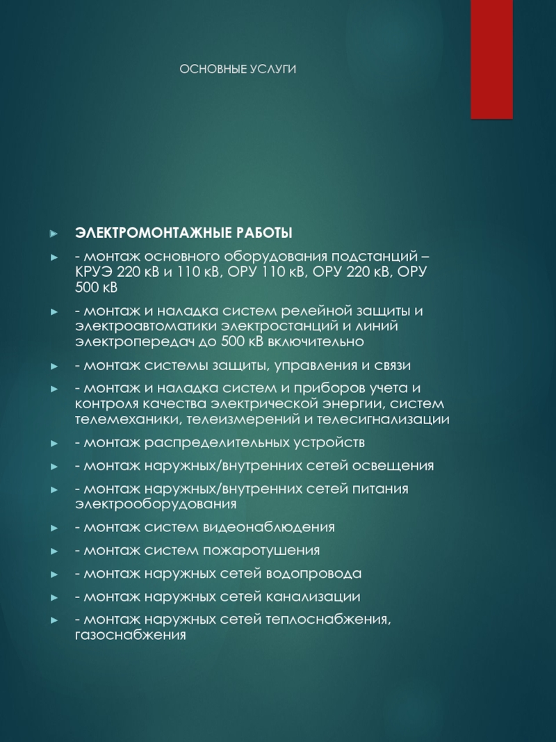 Слайд 4ОСНОВНЫЕ УСЛУГИ