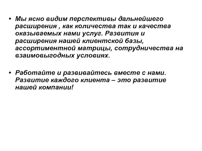 Слайд 10Мы ясно видим перспективы дальнейшего расширения , как количества так и