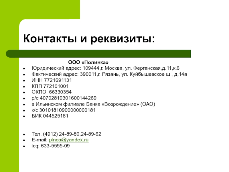 ООО «Полинка» является динамично развивающейся компанией на рынке России и