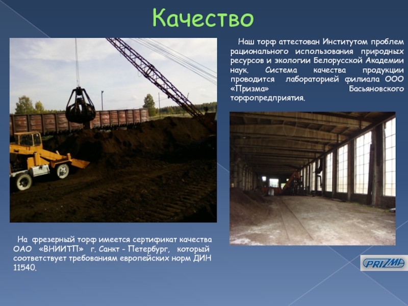 На фрезерный торф имеется сертификат качества ОАО  «ВНИИТП»  г. Санкт - Петербург,  который соответствует требованиям европейских норм ДИН 11540.