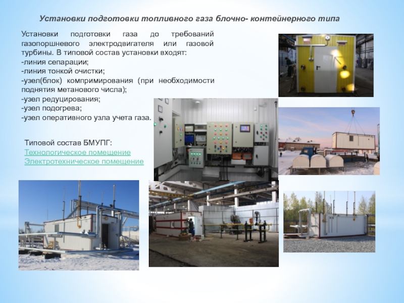 Установки разрабатываются для разной производительности по газу, с применением различных технологий подготовки газа.