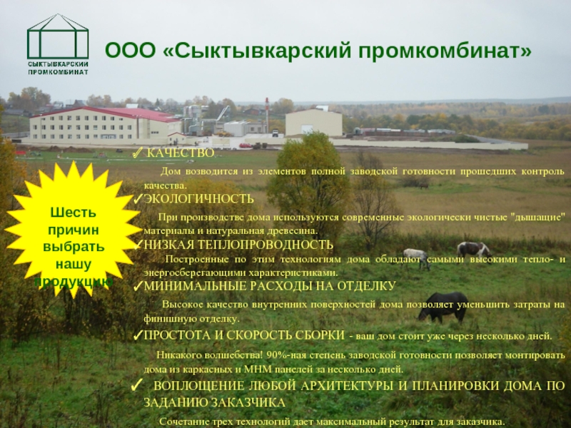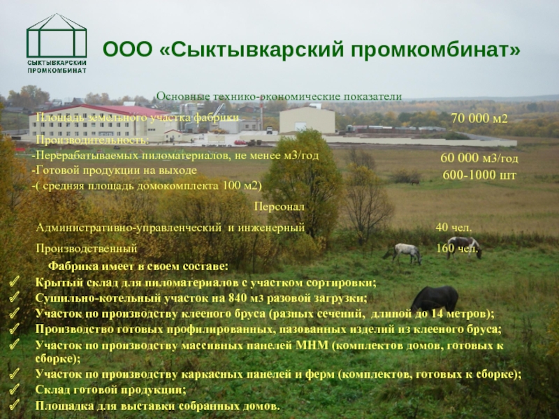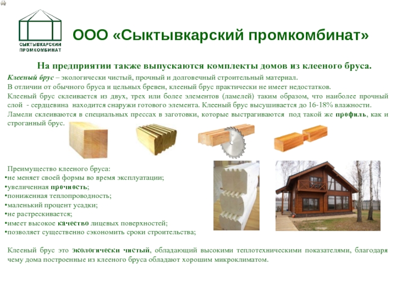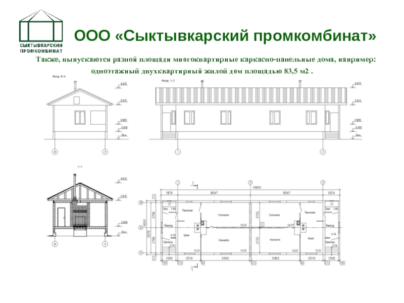 На предприятии налажен выпуск одноквартирных и многоквартирных комплектов домов, зданий и социальных объектов (школы, больницы) до 2 этажей, 100 процентной готовности для сборки трех типов: