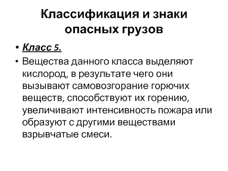 транспорте вид опасности. Это обусловлено обширной номенклатурой огнеопасных грузов, как способных вызвать воспламенение, так и поддерживающих горение.