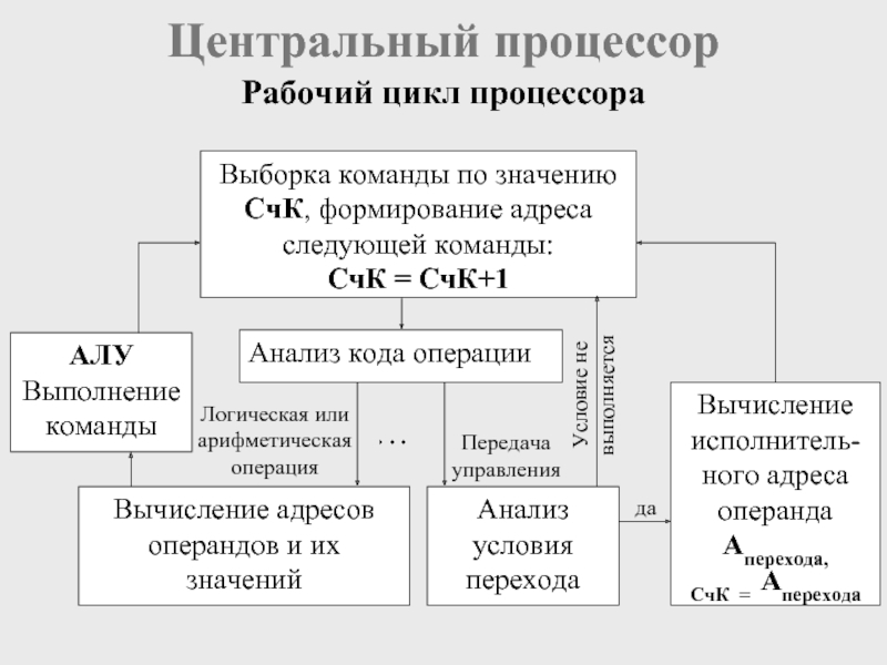 Вычисление исполнитель-ного адреса операнда Аперехода,