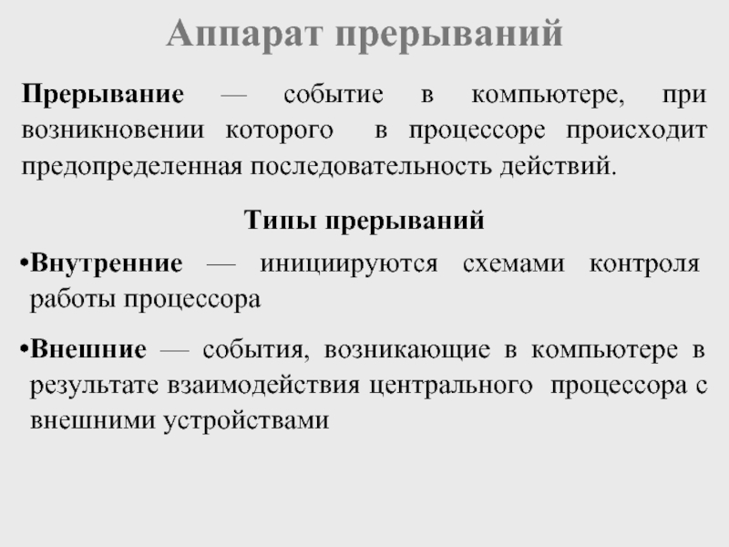 Внешние — события, возникающие в компьютере в результате взаимодействия центрального процессора с внешними устройствами