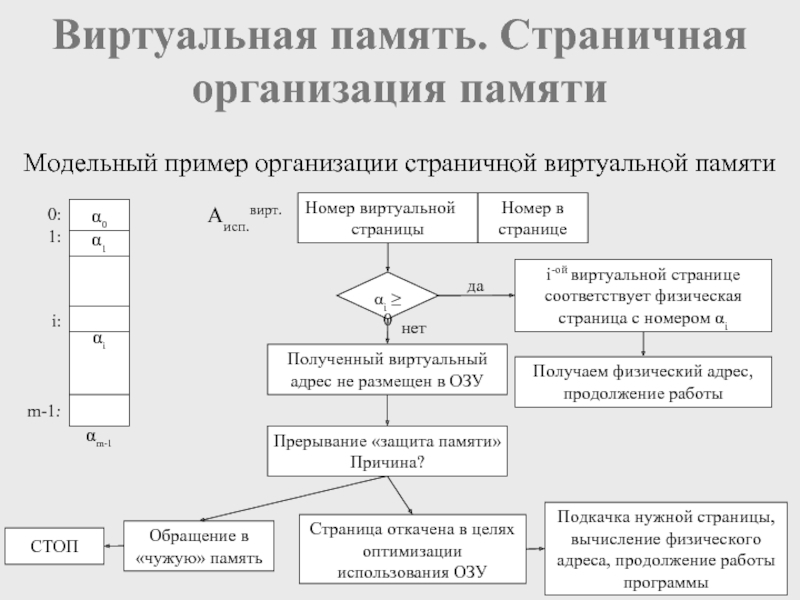 i-ой виртуальной странице соответствует физическая страница с номером αi