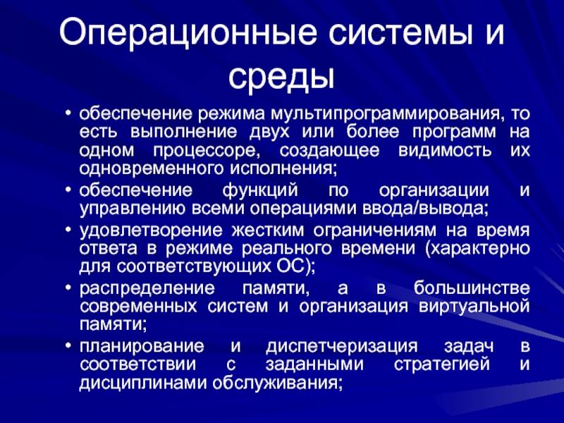 удовлетворение жестким ограничениям на время ответа в режиме реального времени (характерно для соответствующих ОС);