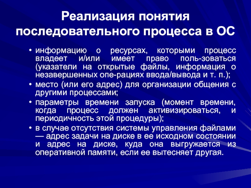 Слайд 40Реализация понятия последовательного процесса в ОС