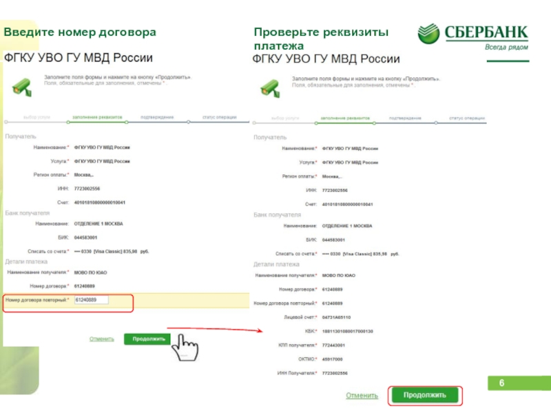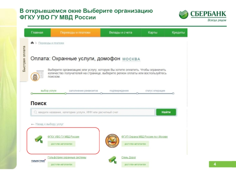Оплата услуг ФГКУ УВО ГУ МВД России через Сбербанк Онлайн презентация