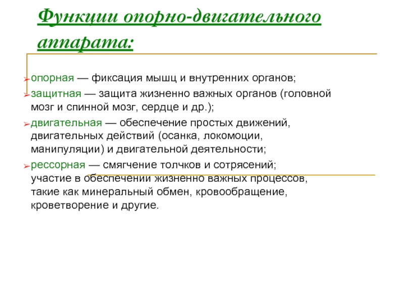 структур, образующих каркас, придающий форму организму, дающий ему опору, обеспечивающий защиту внутренних органов и возможность передвижения в пространстве