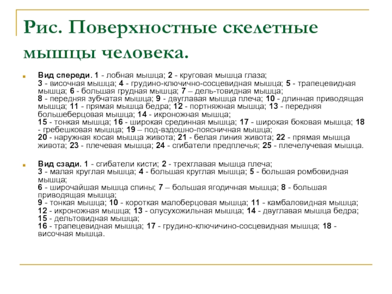 Слайд 45Рис. Поверхностные скелетные мышцы человека.