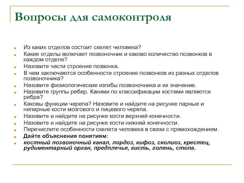 тела, соединенных между собой. Он формирует костный каркас тела.