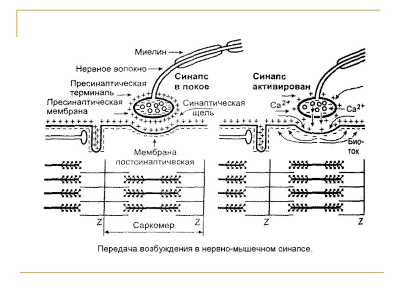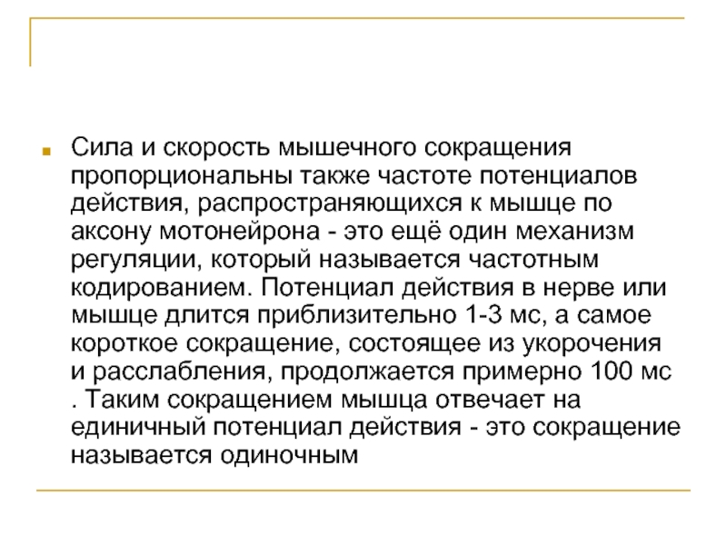Слайд 55Сила и скорость мышечного сокращения пропорциональны также частоте потенциалов действия, распространяющихся