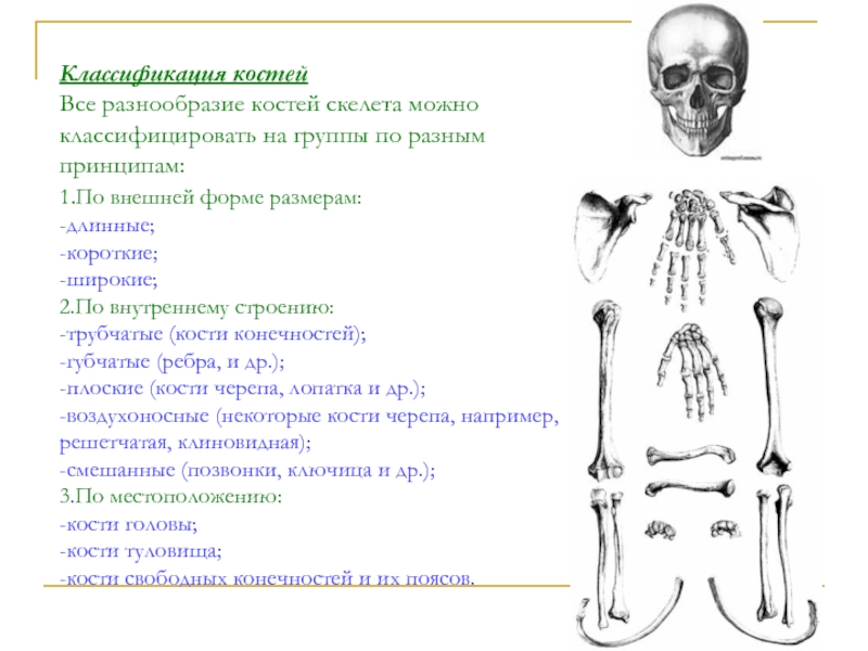 -воздухоносные (некоторые кости черепа, например, решетчатая, клиновидная);