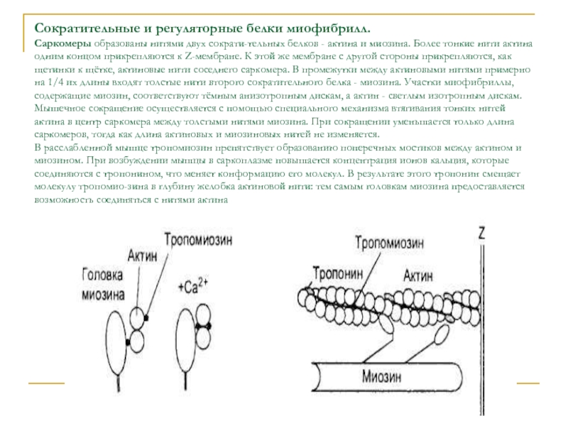 Слайд 50Сократительные и регуляторные белки миофибрилл.