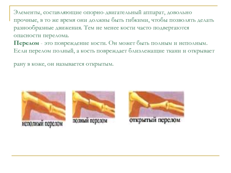 должны быть гибкими, чтобы позволять делать разнообразные движения. Тем не менее кости часто подвергаются опасности перелома.