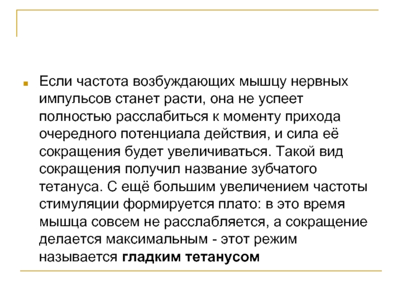 Слайд 57Если частота возбуждающих мышцу нервных импульсов станет расти, она не успеет