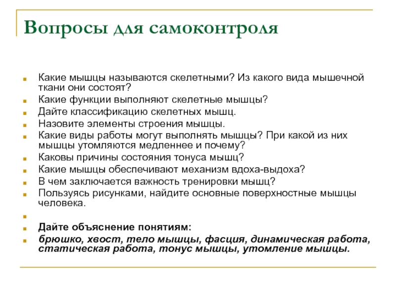 брюшко, хвост, тело мышцы, фасция, динамическая работа, статическая работа, тонус мышцы, утомление мышцы.